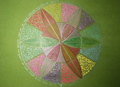 “Platão disse que a Alma é um círculo. Desenhei uma linha horizontal, atravessando o círculo, para representar a linha divisória entre o consciente e o inconsciente. O centro, de onde provém toda a nossa energia, está representado pelo ponto no centro do círculo, abaixo da linha horizontal. Acima dessa linha está o ego, que eu representei por um quadrado: é o aspeto da nossa consciência que identificamos como o nosso centro. Mas ele está muito distante do nosso verdadeiro centro, o centro do círculo, da nossa Alma.”